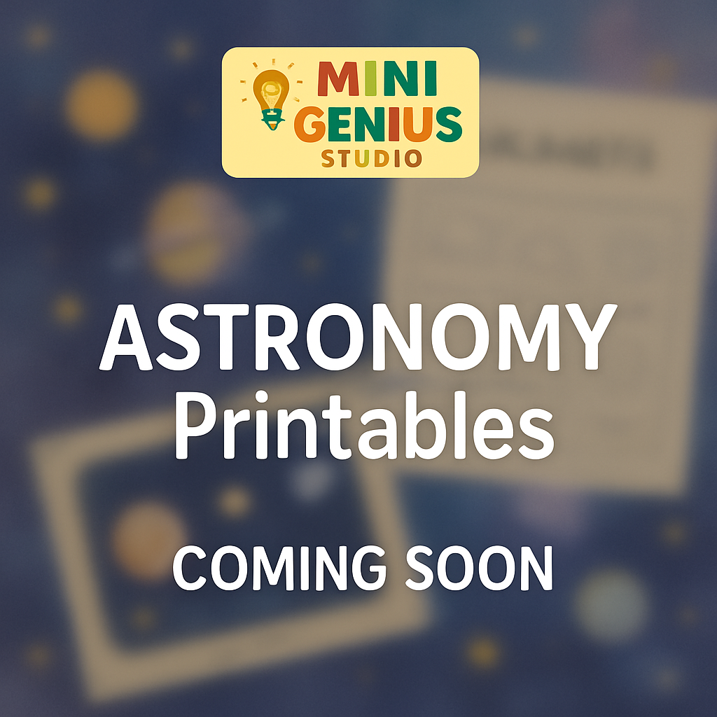 At Mini Genius Studio, we are working on a brand-new collection of Astronomy Printables to help kids explore planets, stars, and the wonders of the universe in a fun and playful way.